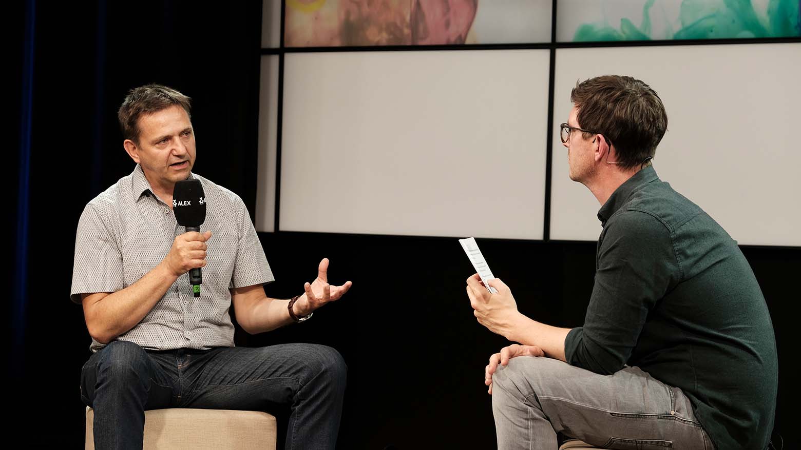 Moderator Tom Zimmermann im Gespräch mit Holger Hofmann, Bundesgeschäftsführer des deutschen Kinderhilfswerks. Foto: Wolfgang Borrs